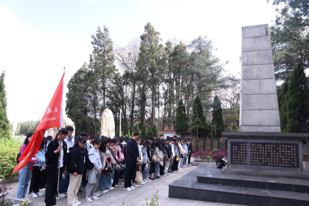 随后,同学们来到黄龙山古柏公园,在讲解员的详细讲述下,深入了解了红军经过嵩明的历史,同学们深刻感受到革命战士的爱国主义精神。在灵云山革命烈士陵园,同学们缅怀了为国家和民族而英勇牺牲的革命先烈。