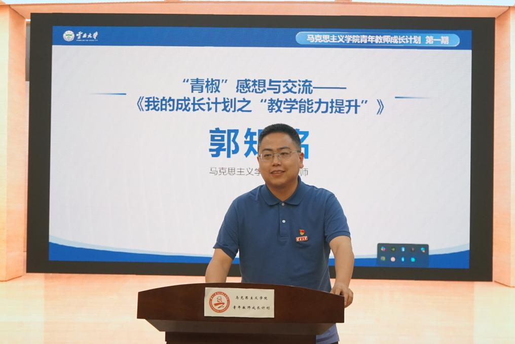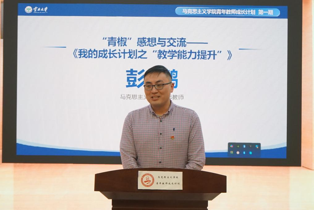 在“青椒”感想与交流分享环节,彭鹏老师和郭矩铭老师作为青年教师代表,结合自身教学实践进行了分享。